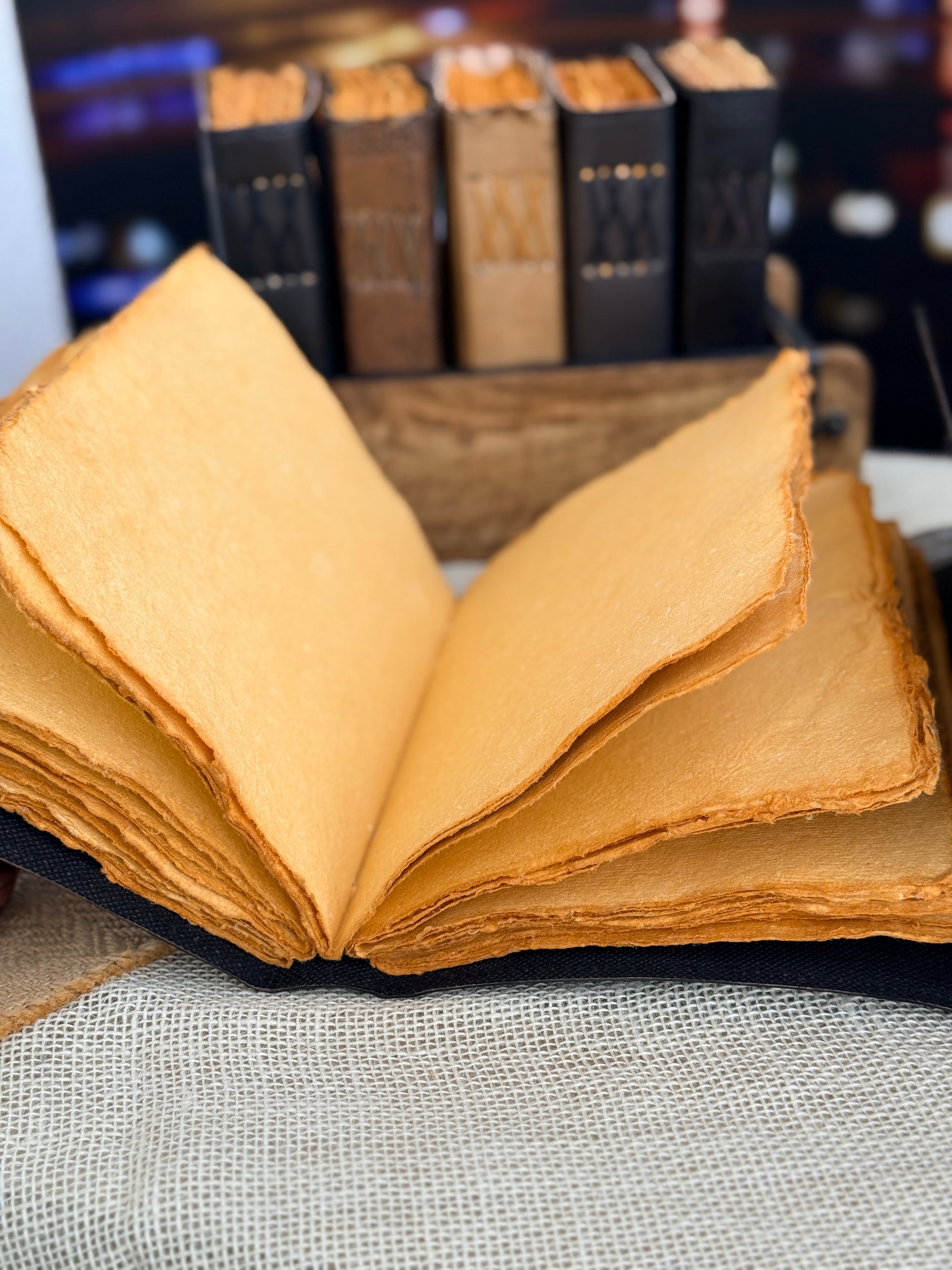 Zanurz się w świecie dawnych rytuałów i osobistych zapisków z naszą Księgą Cieni. To nie tylko notatnik, to artefakt stworzony dla tych, którzy szukają głębi i autentyczności w swojej magicznej praktyce. W środku znajduje się ręcznie robiony papier czerpany, który pięknie przyjmuje atrament i nadaje zapiskom wyjątkowy charakter.